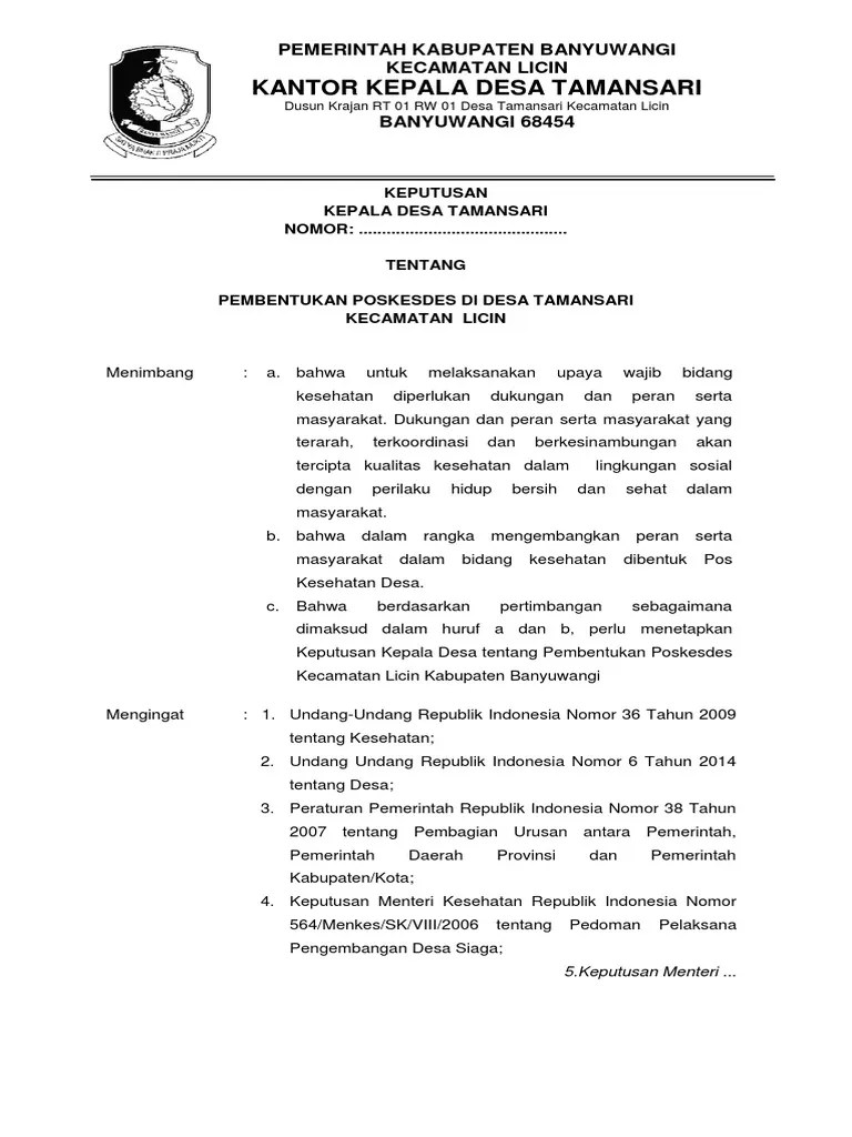 Contoh Sk Surat Kesehatan Desa / Doc 3 1 Ep 2 Sk Penanggung Jawab Pelayanan Dan Program Yang Benar Puskesmas Lubuk Alung Academia Edu / Surat keputusan bupati tentang surat penerimaan tenaga kontrak daerah pada dinas kesehatan th.2019.